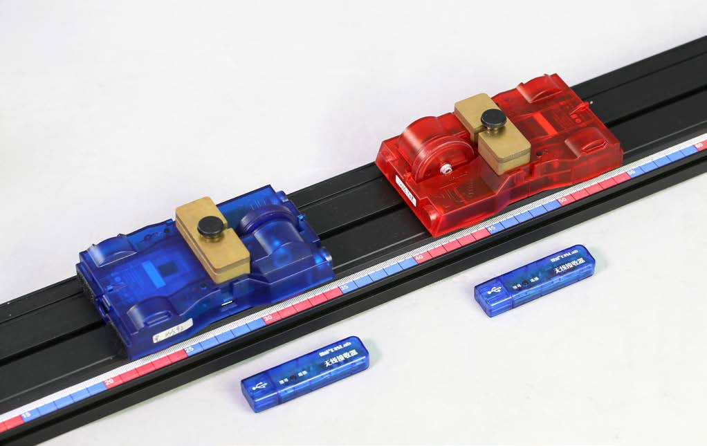 1 先用天平称量两小车质量(本次实验 m1 = 189.3 g,m2 = 187.8 g),将两辆小车(同性磁碰片相对)放置到专用轨道两端;