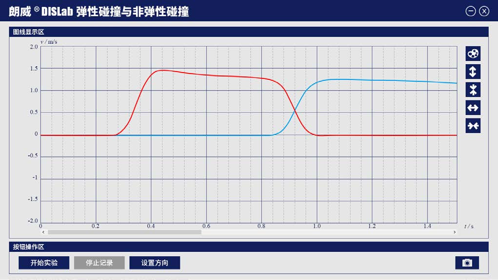 2 打开光电计时测距实验器专用软件,进入“动量守恒”实验界面,单击“设置方向”,设置蓝色小车运动方向为反方向;