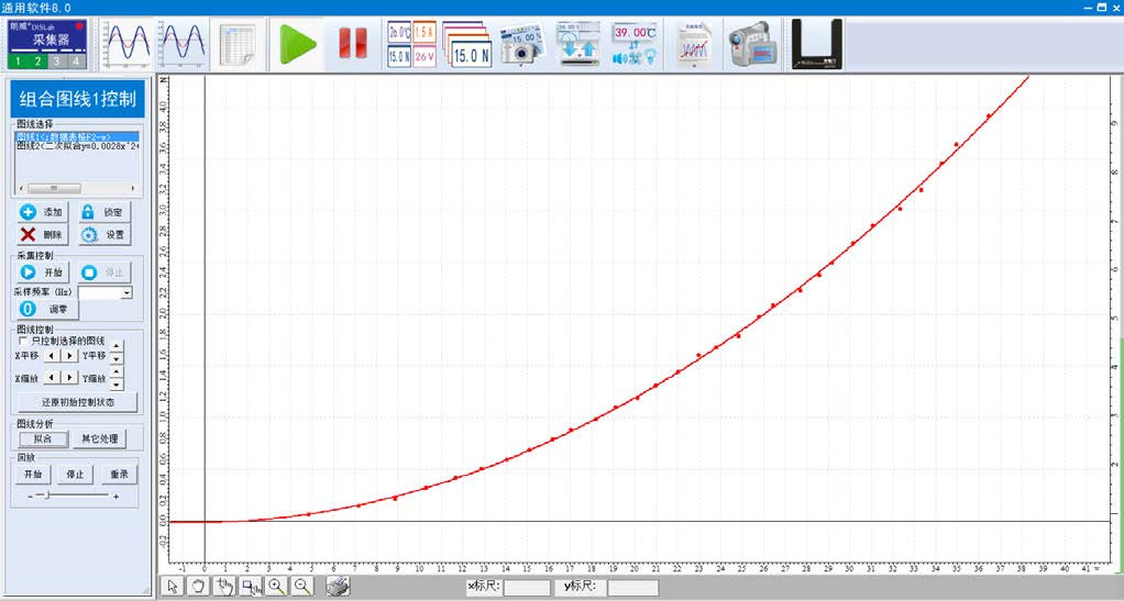 8 单击“F – m 图像”得到拟合图像,接近于正比例函数曲线如图 36 – 6;