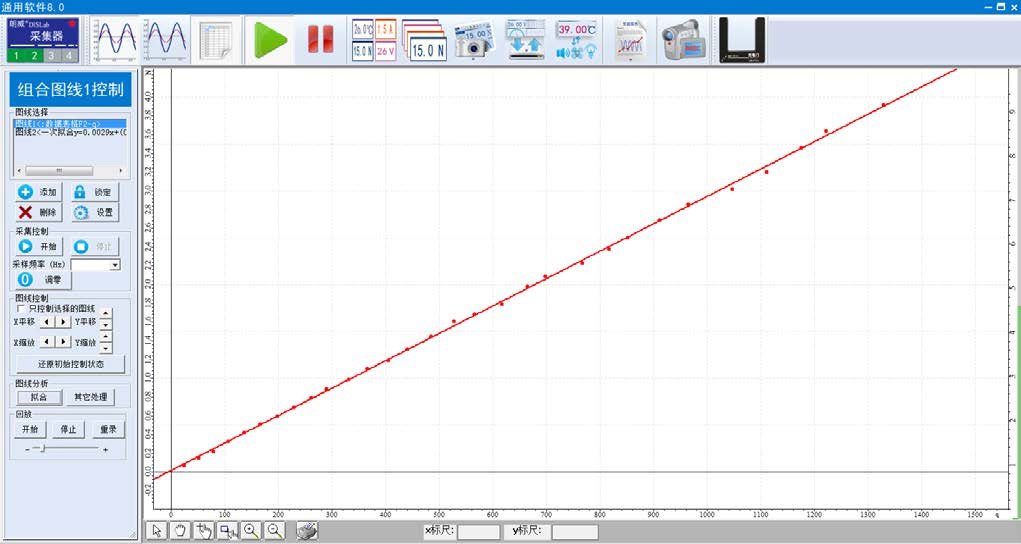 11 单击“F – r 图像”,得到拟合曲线接近于正比例函数曲线,如图 36 – 8。