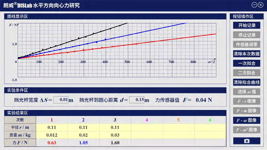 朗威无线向心力实验器(LW-Q711)、计算机。