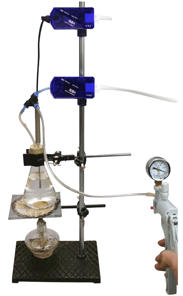 朗威压强传感器(LW-T822)、温度传感器(LW-T803)、三通接头、250 ml 锥形瓶、胶管、真空计、计算机等。