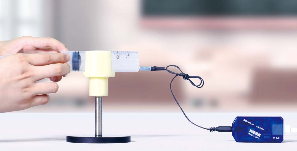 2.压住注射器活塞,当温度示数稳定后,快速释放活塞,可观察到温度下降现象。