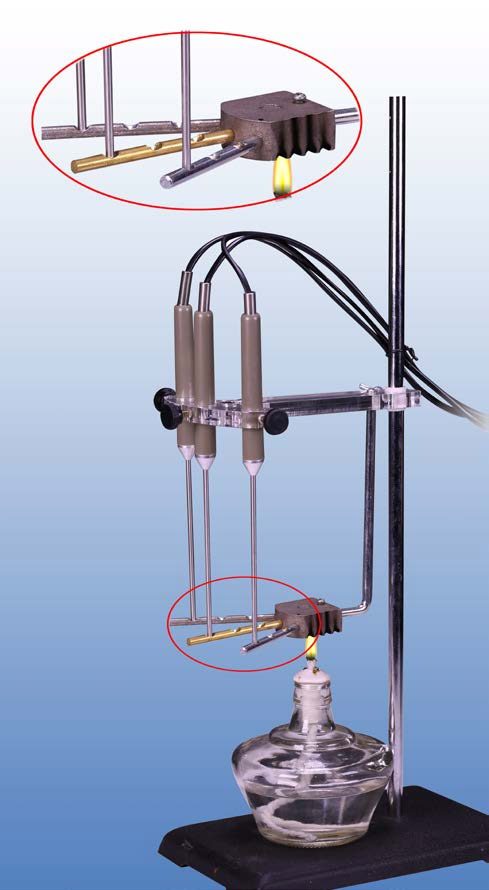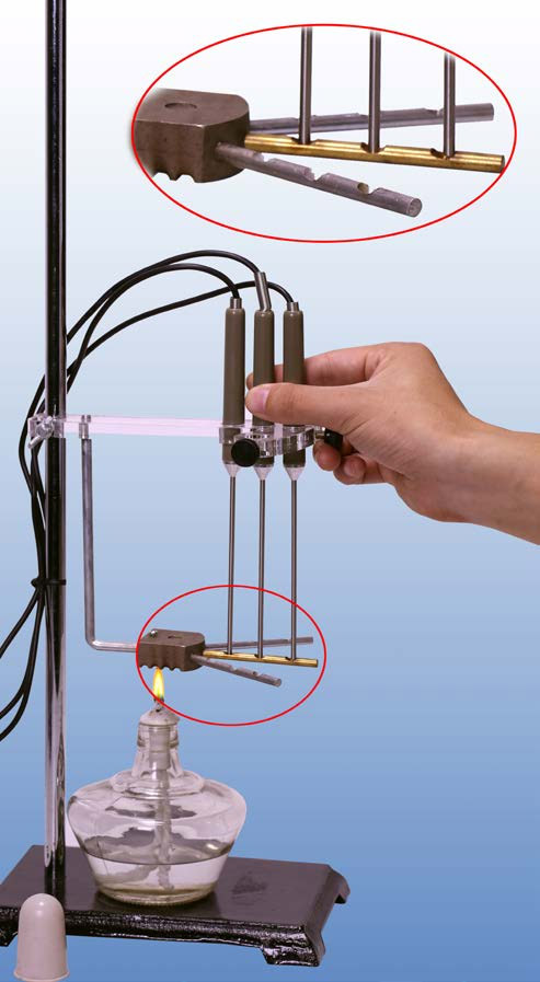 朗威温度传感器×3(LW-T803)、热传导实验器(LW-XQ782)、铁架台、酒精灯、计算机。