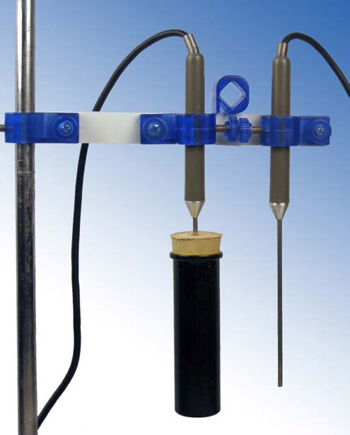见图 44 – 1,本实验中将温度传感器探针和盛有热水的铝管浸入盛有自来水的大水槽,并以水温作为环境温度。