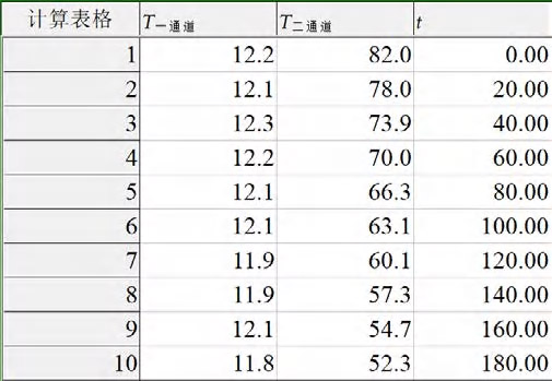 1 单击“计算表格”,设置时间间隔为 20 s,自动记录温度测量数据;