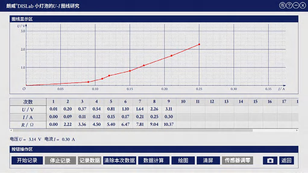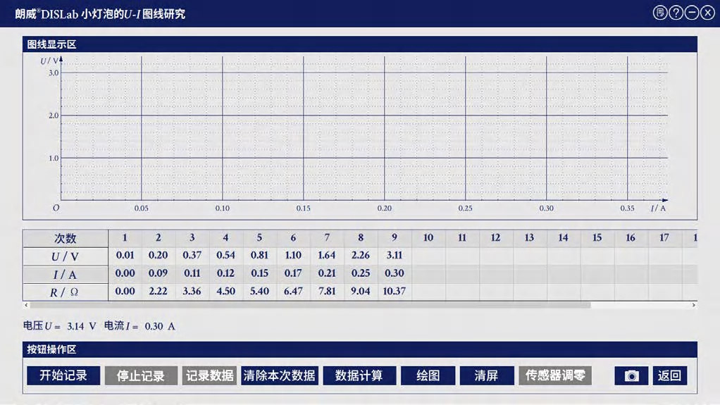 2.进入专用软件“小灯泡 U – I 图线描述”实验;