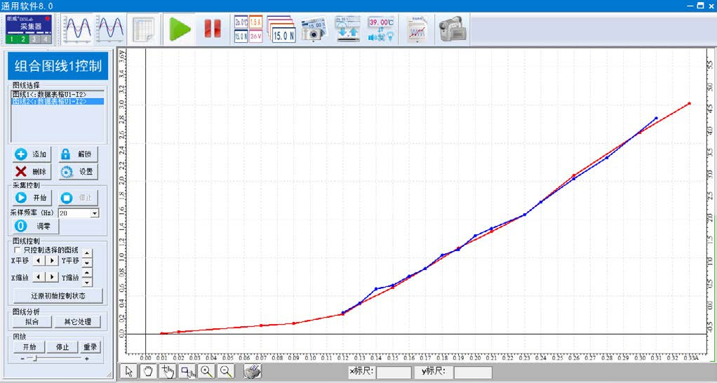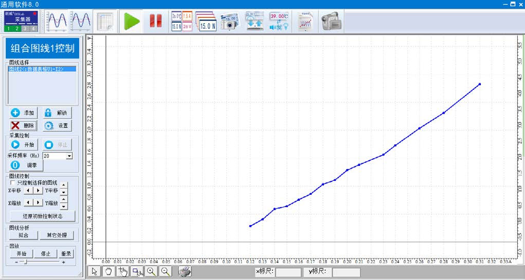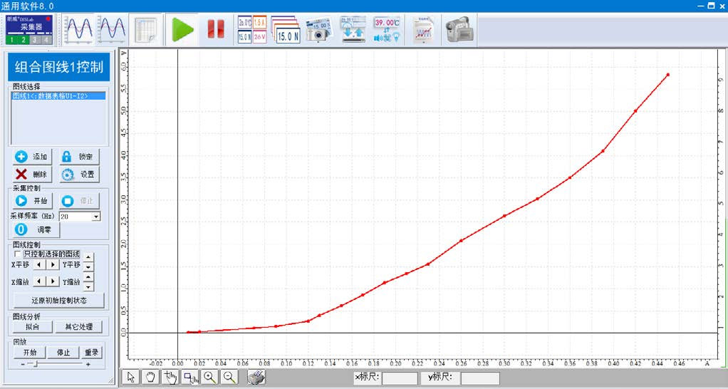 4.单击“绘图”,得出“电压 – 电流”关系图线(图 52 – 4)。