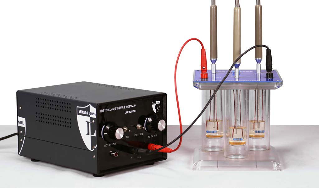 朗威温度传感器 ×3(LW-T803)、焦耳定律实验器(LW-Q726)、多功能学生电源(LW-Q708)、导线、液体煤油、计算机等。