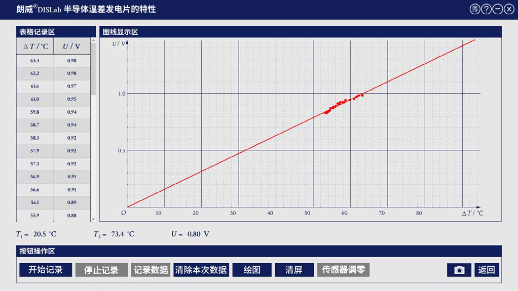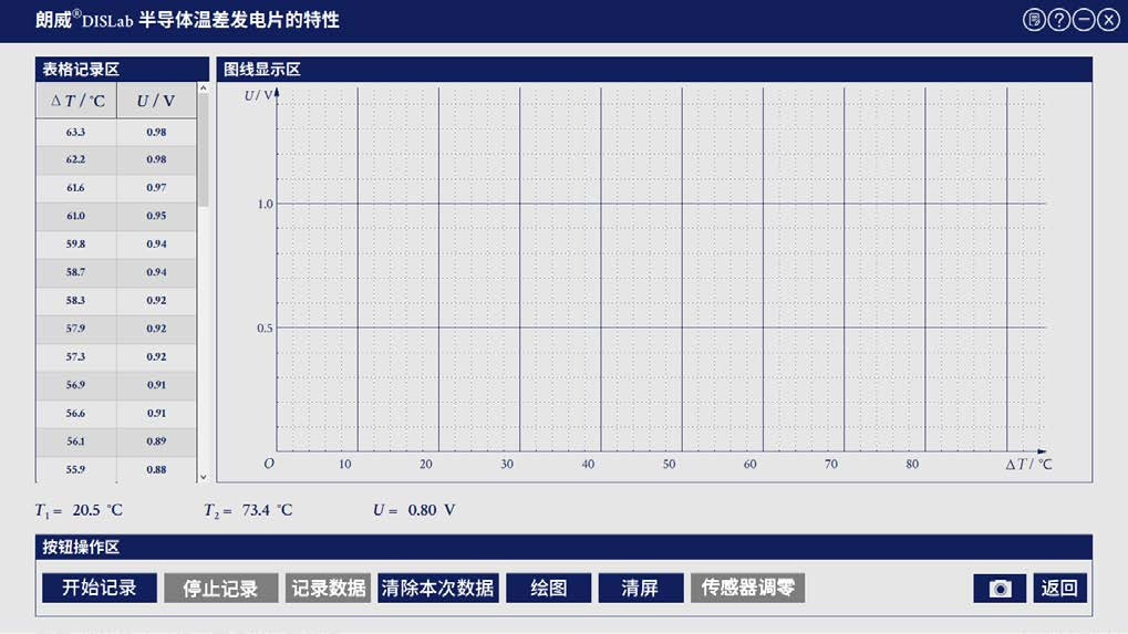 1 进入专用软件“半导体温差发电片的特性”实验界面;