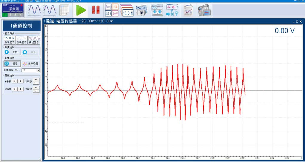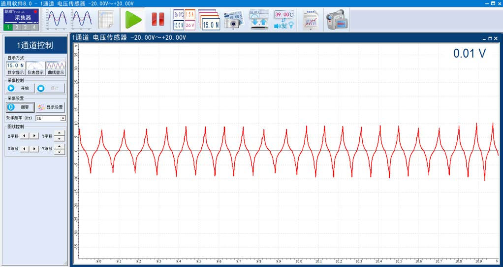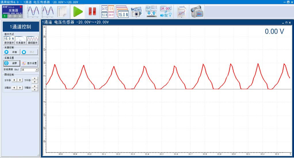2 缓慢摇动发电机的手柄,观察电压的图线变化;