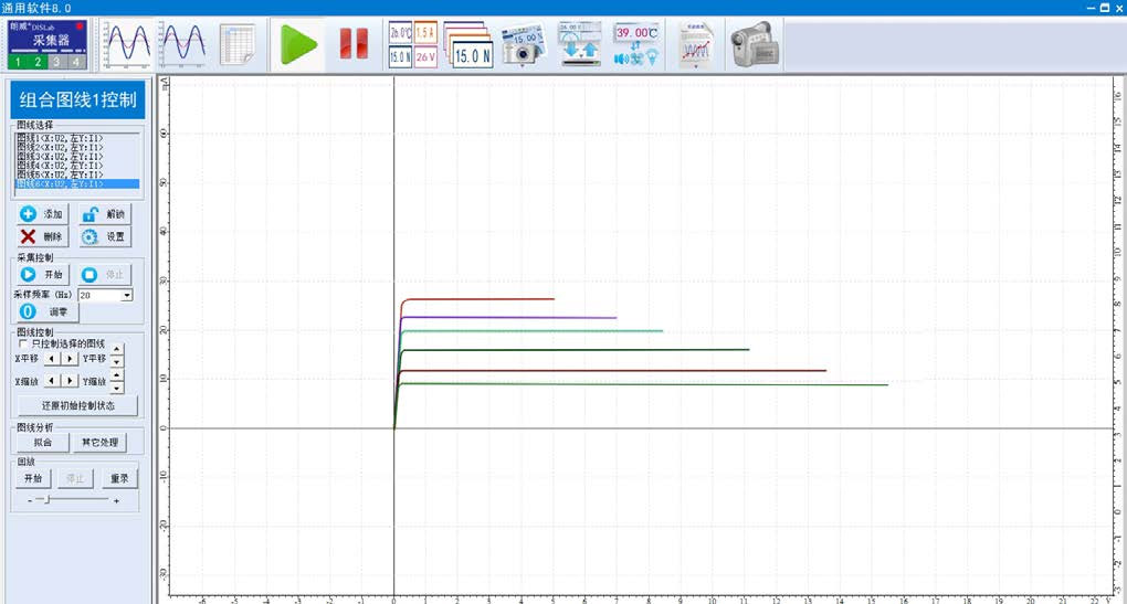 2.打开通用软件,单击“组合图线”,选取 x 轴为“电压”,y 轴为“电流”;