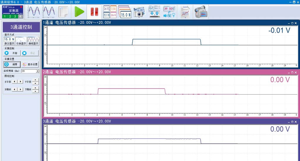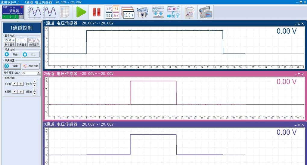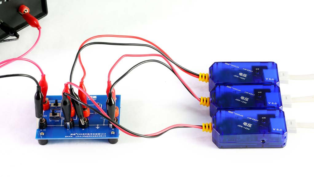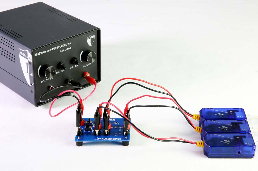 朗威电压传感器 (LW-E841)×3、电学实验板 EXB-20、EXB-21、EXB-22(LW-6337)、多功能学生电源(LW-Q708)、计算机。