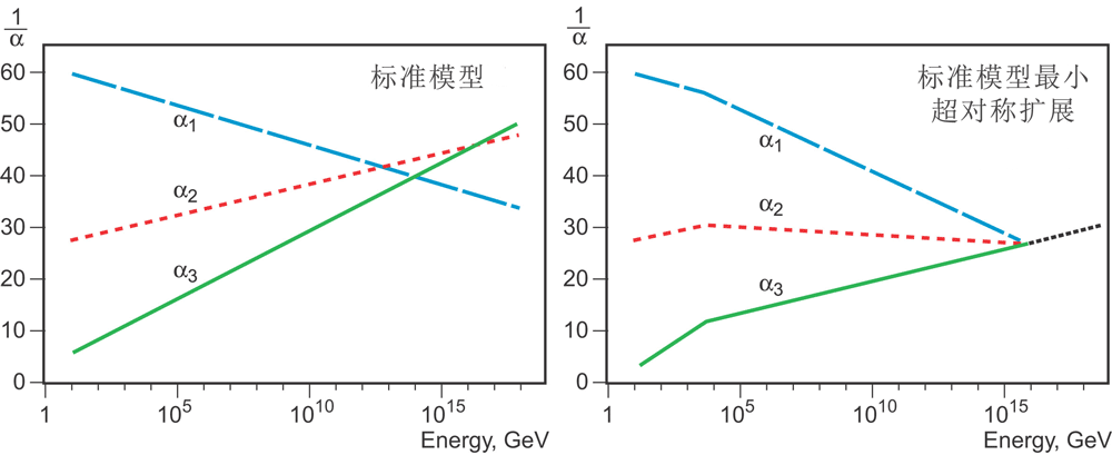 然而,标准模型尚需作某些修改才能实现自然力大统一的美梦。一种可能性是引入一系列所谓的超对称性粒子,它们的质量足够小。现在日内瓦 CERN 的大型强子对撞机(LHC)正在对此进行研究。