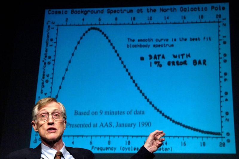 1974 年,NASA(美国航空航天局)向众多的天文学家和宇宙学家发出邀请,请他们对新的太空实验计划提出建议。这就是宇宙背景探测器(Cosmic Background Explorer,COBE)计划。有超过 1 000 名的科学家、工程师和辅助人员参与了该计划的实施。马瑟是这个宏伟计划的真正推动者。他还负责飞船上一种专门用来研究背景辐射中黑体光谱的仪器。斯穆特则负责另一项关键性仪器,用于寻找背景辐射在不同方向上的微小差异。