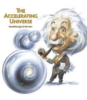 这一令人不安的结论在发现星系退行现象之前约十年就已得出。即使是爱因斯坦也无法接受宇宙并非静态的事实。于是,为了阻止这种不受欢迎的宇宙膨胀,他在方程中加入了一个常数,称为宇宙学常数。后来,爱因斯坦认为引入宇宙学常数是一个重大错误。然而,随着 1997—1998 年的观测(这些观测成果获得了今年的诺贝尔奖),我们可以得出结论:爱因斯坦的宇宙学常数——尽管出于错误的原因引入——实际上是一个天才之举。