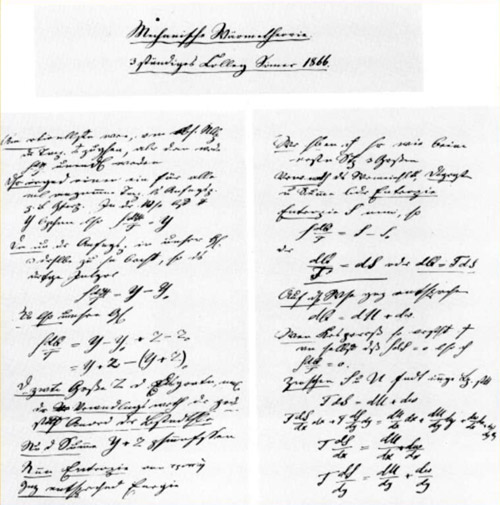 一般认为,克劳修斯在 1865 年提出了熵的概念,其实,早在 1854 年,即最初形成热力学第二定律之后不到四年,他在《热的机械论中第二个基本理论的另一形式》一文中提出了“变换的等价性”,用一个符号 N 表示变换,这个符号 N 就是熵 S 的前身。
