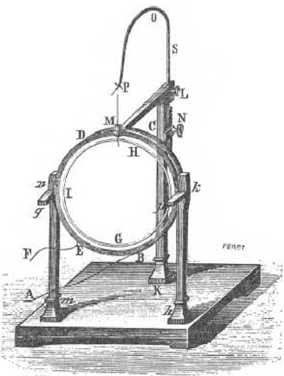 例如:1805 年有两个德国人,他们把伏打电堆悬挂起来,企图观察电堆在地磁的作用下会不会改变取向。这类实验当然得不到结果。