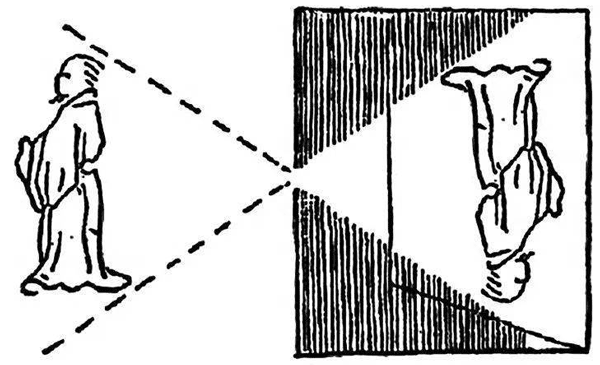 光学的起源也和力学、热学一样,可以追溯到二三千年前。我国的《墨经》就记载了许多光学现象和成像规律,例如投影、小孔成像(图 4 – 1)、平面镜、凸面镜、凹面镜等等。西方也很早就有光学知识的记载,欧几里得(Euclid,公元前约 330—前 260)的《反射光学》(Catoptrica)研究了光的反射,阿拉伯学者阿勒·哈增(AlHazen,965—1038)写过一部《光学全书》,讨论了许多光学现象。