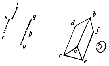 如图 4 – 12,在一张黑纸上画一条线 opq,半边 op 为深蓝色,半边 pq 为深红色,经棱镜 adf 观看,只见这根线好像折断了似的,分界处正是红蓝之交,蓝色部分 rs 比红色部分 st 更靠近棱脊 ab。可见蓝光比红光受到更大的折射。