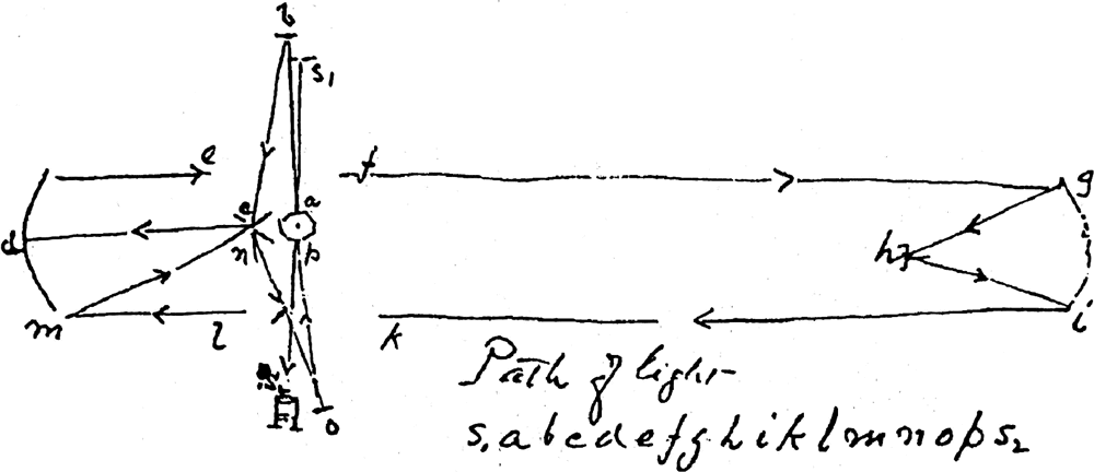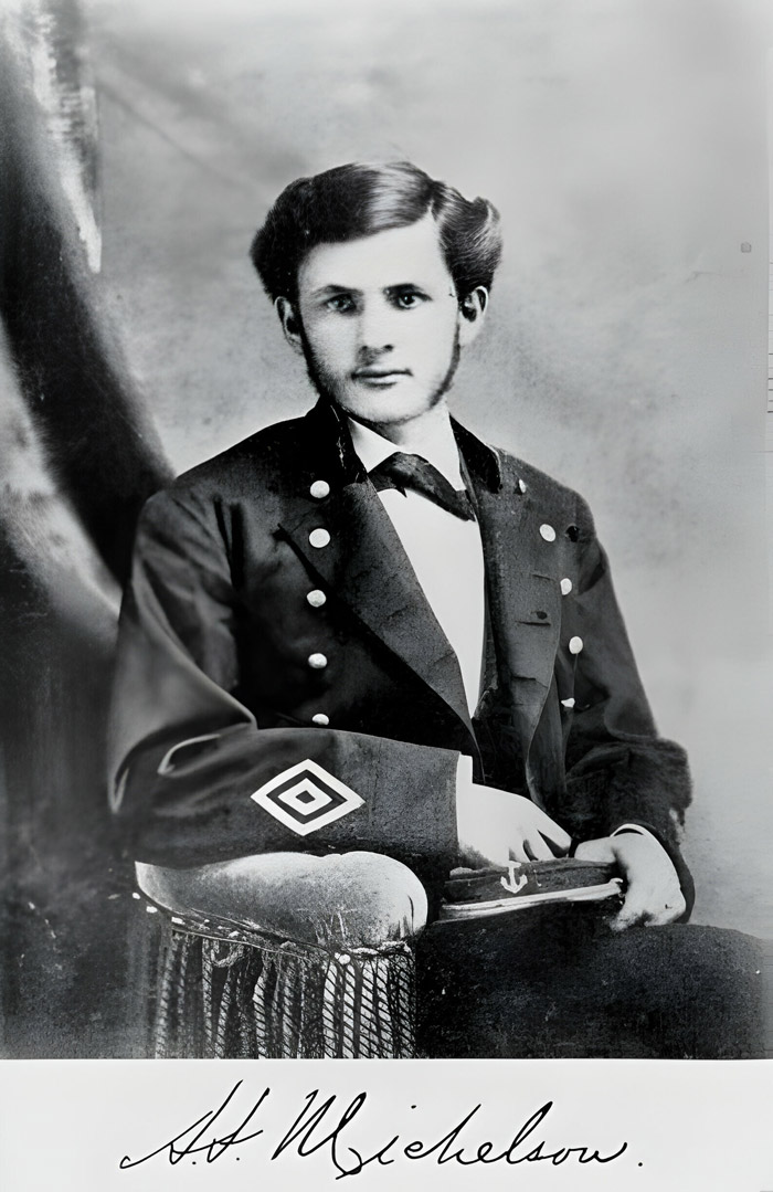 1879 年,美国物理学家迈克耳孙(Albert Abraham Michelson,1852—1931)又改进了傅科的旋转镜法,测得光速 c =(2.999 1±0.000 5)×108 米/秒。