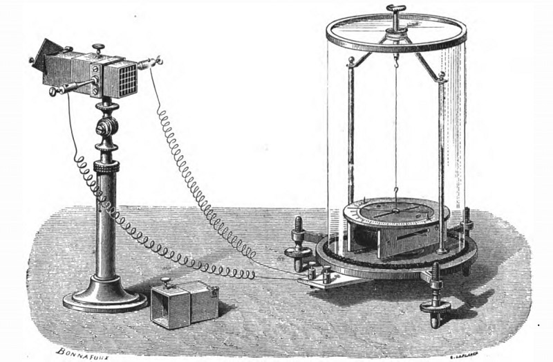 1800 年,英国的赫谢尔在观察太阳光谱的热效应时发现了红外线,并且证明红外线也遵守折射定律和反射定律,但比可见光更易于被空气和其他介质吸收。1821 年,德国的塞贝克(T.J.Seebeck,1780—1831)发现温差电现象并用之于测量温度。1830 年,意大利的诺比利(L.Nobili,1784—1835)利用温差电堆发明了热辐射测量仪。1835 年,他的同胞梅隆尼(M.Melloni,1798—1854)改进这一装置(如图 5 – 35)并用之于接收包括红外线在内的热辐射能量,再用不同材料置于其间,比较它们的折射和吸收作用。他发现岩盐对热辐射几乎是完全透明的,后来就用岩盐一类的材料做成了各种适用于热辐射的“光学”器件。