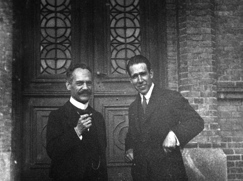 尼尔斯·玻尔是丹麦人,早年在哥本哈根大学攻读物理,1909 和 1911 年作硕士和博士论文的题目是金属电子论,在这过程中接触到量子论,1911 年,赴英国剑桥大学学习和工作,1912 年在曼彻斯特大学卢瑟福的实验室里工作过四个月,其时正值卢瑟福发表有核原子理论并组织大家对这一理论进行检验。玻尔参加了 α 射线散射的实验工作,帮助同事们整理数据和撰写论文。他很钦佩卢瑟福的工作,坚信有核原子模型符合客观事实。他也很了解卢瑟福的核模型理论所面临的困难,认为要解决原子的稳定性问题,惟有靠量子假说,也就是说,要描述原子现象,就必须对经典概念进行一番彻底的改造。卢瑟福参加索尔威会议后回到英国,曾与玻尔详细讨论会议的内容,使玻尔更加坚定到量子理论的信心。正在他试图运用量子理论解决原子稳定性而日夜苦思之际,他的一位朋友汉森(H.M.Hansen)向他介绍氢光谱的巴耳末公式和斯塔克(J.Stark)的著作。后来,玻尔回忆道:”当我一看到巴耳末公式,我对整个事情就豁然开朗了。”他从斯塔克的著作学习了价电子跃迁产生辐射的理论,于是很快就写出了题名《原子构造和分子构造》Ⅰ,Ⅱ,Ⅲ 的三篇论文,人称玻尔“三部曲”,这三篇论文先后发表在 1913 年《哲学杂志》上。在第一篇的开头,玻尔写道: