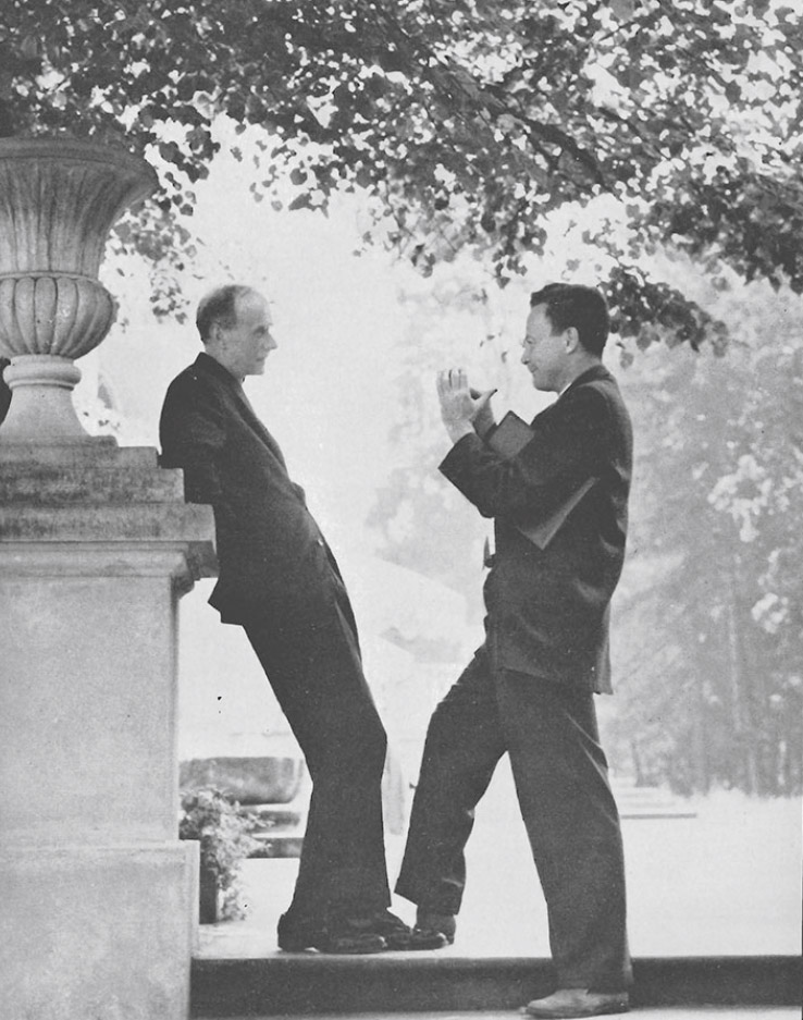 图中从左到右:兰姆,派斯(A.Pais)、惠勒(A.Wheeler)、费因曼、费希巴赫(H.Fechbach)和施温格,他们正在讨论物理问题。