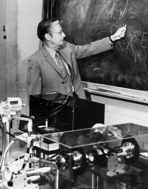 布洛姆伯根(Nicolaas Bloembergen,1920— )是非线性光学理论的奠基人。他提出了一个能够描述液体、半导体和金属等物质的许多非线性光学现象的一般理论框架。他和他的学派在以下三个方面为非线性光学奠定了理论基础:一、物质对光波场的非线性响应及其描述方法;二、光波之间以及光波与物质激发之间相互作用的理论;三、光通过界面时的非线性反射和折射的理论。他把各种非线性光学效应应用于原子、分子和固体的光谱学研究,从而形成了激光光谱学的一个新领域——非线性光学光谱学。