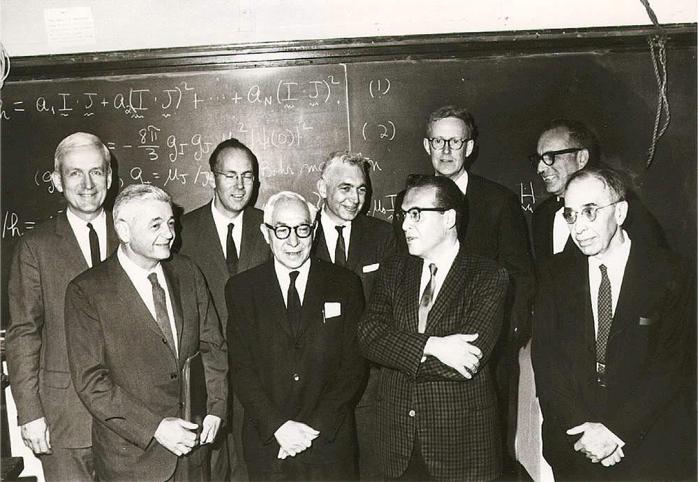 “拉比树”的丰硕成果还可以用如下好几项获得诺贝尔奖的项目来代表:1946 年布洛赫和帕塞尔分别用核感应法和共振吸收法测核磁矩(1952 年奖);1948 年拉姆齐用分离振荡场方法创建了铯原子钟,随后又于 1960 年制成氢原子钟,原子钟后来发展成为最准确的时间基准(1989 年奖);1950 年卡斯特勒提出光抽运方法(1966 年奖);1954 年,汤斯小组研制“分子振荡器”成功,实现了氨分子束的粒子数反转;接着,汤斯和肖洛提出激光原理;汤斯、巴索夫和普罗霍罗夫因量子电子学方面的基础工作获 1964 年物理学奖;布隆姆贝根和肖洛获 1981 年物理学奖。