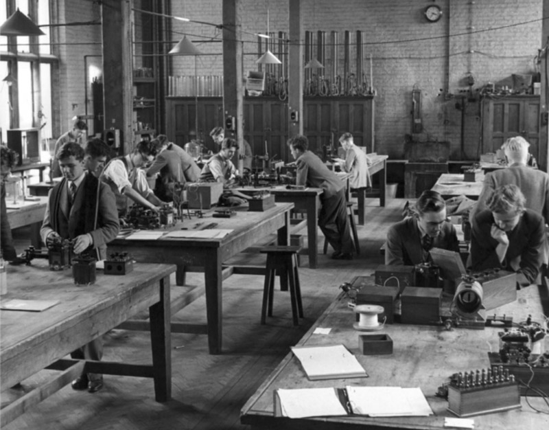 1930 年后,由于加速器的建设和高压电与低温物理实验室的建立,所需工作人员人数增多,机构逐渐增大,管理工作复杂,为此卢瑟福曾在 1921 年特设了主任助理,并于 30 年代初再分设四个专业组和另建一个分实验室蒙德实验室。这时仍然实行卡文迪什教授集中领导的体制。到了 1948 年,由于人数过于庞大,专业分工大大加强,注重民主管理的劳伦斯·布拉格教授设立专门负责行政事务的专职秘书,建立大组系统,每个大组单独设立实验室、车间和秘书,自成体系,从而形成组系管理制。这样就保证实验室主任能把主要精力用于科研和教学管理,从而促进了实验室的科学研究和教学任务的开展。