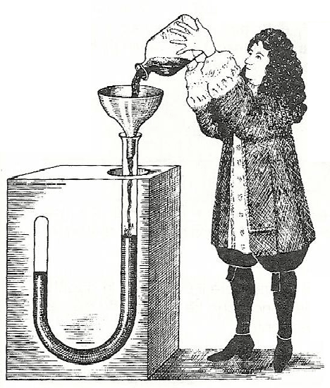 英国的玻意耳测量气体体积随压强变化的关系要用到一根长管子,如图 14 – 2。据记载,由于管子太长,室内无法周转,只好拿到住宅的楼梯上进行实验。牛顿的白光色散实验是在他剑桥大学的住房中做的。美国的富兰克林在做了风筝实验之后,又在家里立了一根绝缘的铁杆准备进行空气带电试验。他们都没有利用职位之便在所在机构建立专门的实验室。