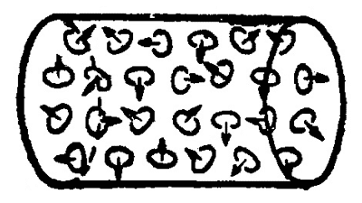 安培的假说能够解释各种磁现象,一根软铁棒,在未被磁化的时候,内部各分子电流的取向是杂乱无章的(图 1–11 甲),它们的磁场互相抵消,对外界不显磁性,当软铁棒受到外界磁场的作用时,各分子电流的取向变得大致相同(图 1–11 乙),软铁棒就被磁化了,两端对外界显示出较强的磁作用,形成磁极。