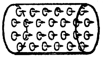 还有一种磁性材料,叫做铁氧体,它是由氧化铁和二价金属(如 Ni,Co,Mn,Mg 等)的氧化物组成的,在电性能上与半导体相似,在磁性上与铁磁性材料相似,铁氧体在电子技术中已经成为不可缺少的磁性材料。在电子计算机中利用铁氧体作记忆元件,在电子线路中广泛利用铁氧体作电感线圈的磁心。