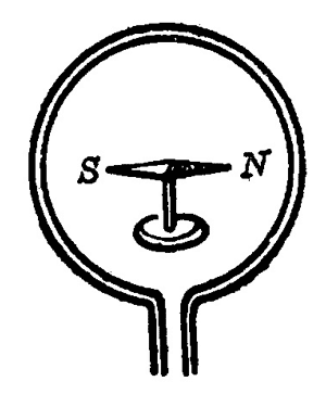 (3)在图 1–14 中,当电流通过线圈时,磁针的南极指向读者。试确定线圈中电流的方向。