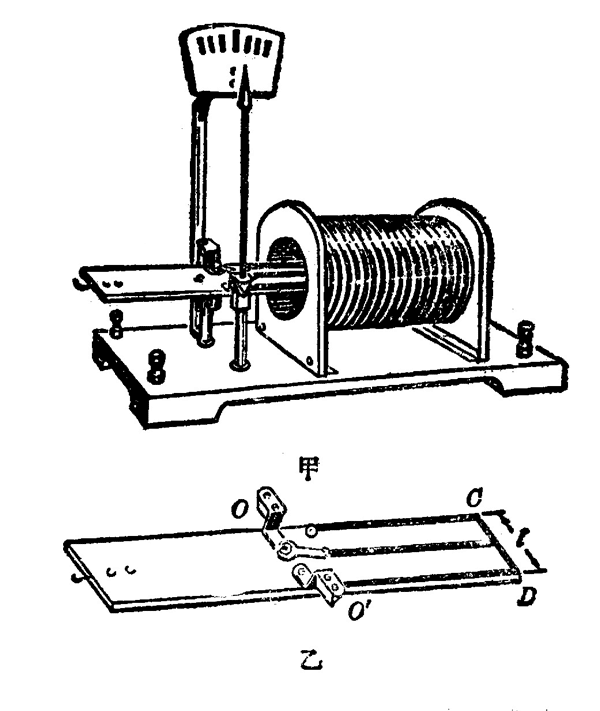 [1] 为了可以改变 l 的长度,仪器的 U 形导线中间又加了一条引线。因此,还可以用这个仪器来研究地磁场对电流的作用力跟导线的长度的关系。