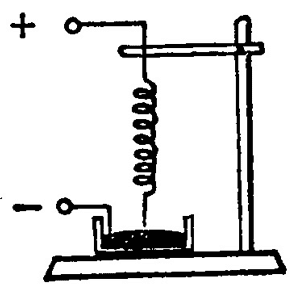(1)照图 1–42 那样,把一根柔软的弹簧竖直地悬挂起来,使它的下端刚刚跟导电液体接触,给弹簧通入电流时,会发生什么现象?做一下这个实验,并解释所发生的现象。