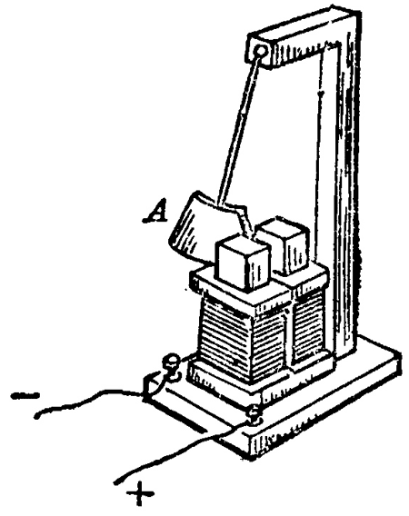 (1)如图 2–33 所示,A 是可以在电磁铁两磁极间摆动的铝片(或铜片)。电磁铁线围没有通电时,铝片可以摆动较长时间才停下来。电磁铁线圈通电时,铝片很快就会停下来。解释这个现象。