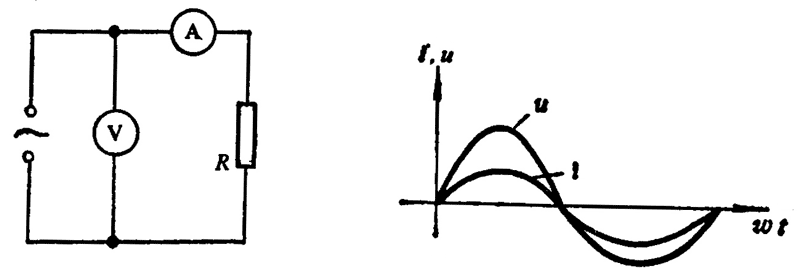 \[i = \frac{u}{R} = \frac{{{U_{\rm{m}}}}}{R}\sin \omega t = {I_{\rm{m}}}\sin \omega t\]