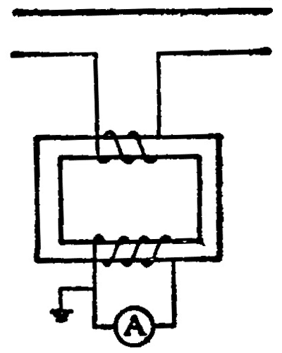 电流互感器(图 3–29)用来把大电流变成小电流。它的原线圈串联在被测电路中,副线圈上接入交流安培表,根据安培表测得的电流 I2 和铭牌上注明的变流比(I1/I2),可以算出被测电路中的电流。如果被测电路是高压电路,为了工作安全,同样要把电流互感器的外壳和副线圈接地。