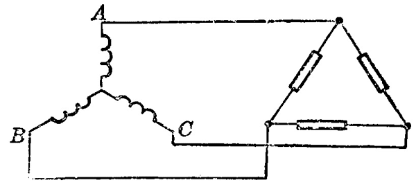 (9)如图 3–61 所示,电源采用星形连接,负载采用三角形连接。电源的相电压是 220 伏,各相负载相同,阻值都是 110 欧,求通过各相负载的相电流和线电流。