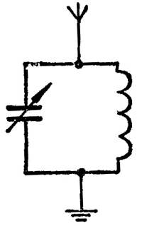 图 4–17 是收音机的调谐电路。调节可变电容器的电容来改变调谐电路的频率,使它跟我们要接收的电台发出的电磁波的频率相同,由于电谐振现象,只有这个频率的电磁波才在调谐电路里激起较强的感生电流,这样,我们就可以选出需要的电台。