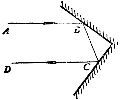 根据上面的现象,在六十年代,曾制作了由三块平面镜组成的反射器,由登月宇航员带到了月球上。这三块平面镜象房子里的墙角那样,彼此相交成直角,能把任何方向射到镜面上的光线逆着原方向反射回去。精确测出激光从地球射到这个反射器再返回地球的时间,再利用光速值就可以算出月球到地球的距离,