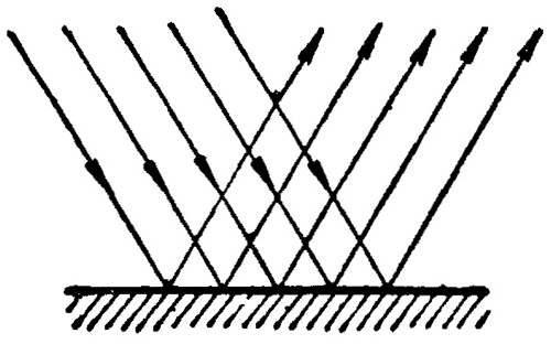 平滑的表面,例如镜面、平静的水面等,能使平行的入射光线沿同一方向平行地反射出去(图 5–8),这时只在这个方向有反射光线,其他方向没有反射光线,这样的反射叫做镜面反射。