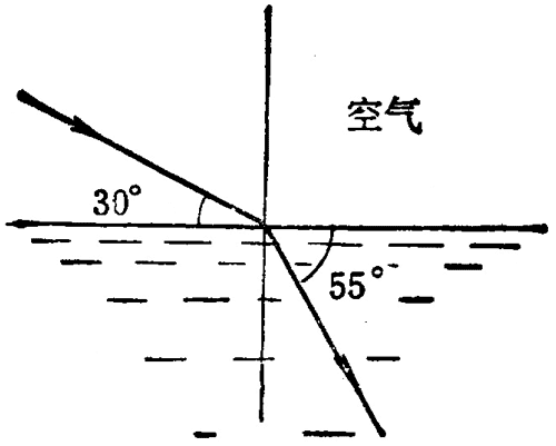 (4)图 5–22 是光线由空气进入某种媒质时的折射情况。试由图中所给的数据求出这种媒质的折射率和这种媒质中的光速。
