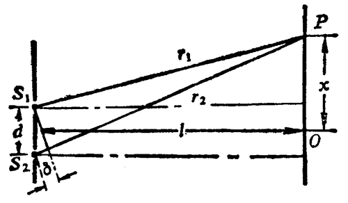我们在力学中学过了波的干涉,研究过水波和声波的干涉现象,我们知道,干涉是波特有的现象,只有频率相同、相差恒定的波源——相干波源才能产生稳定的干涉现象。对于水波或声波,相干波源是容易得到的,但是,要找到符合相干条件的两个相干光源却很困难。在室内点两支蜡烛或两盏电灯,只看到墙壁被均匀照亮,丝毫看不到光的干涉现象,当然,我们不应该因此就得出光不具有波动性的结论,因为这些光源都是独立发光的,甚至同一光源的两个发光部分,我们也无法使它们具有相同的频率和恒定的相差,所以,即使光具有波动性,这样的两个光源也不会产生稳定的干涉现象,无法看到干涉图样。