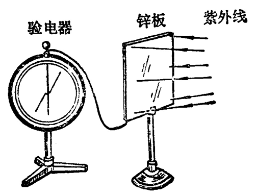 1887 年,赫兹在进行电磁波的实验时发现了一个奇妙的现象:当紫外线照射到圆环接收器间隙的电极上时,火花放电变得容易了,后来其他科学家又发现,用紫外线照射与验电器相连的带负电的锌板时,验电器的金箔便立即闭合。用紫外线照射与验电器相连的不带电的锌板时,验电器上带正电。通过这些现象人们认识到,用紫外线照射金属时,电子会从金属表面飞出来。在紫外线照射下,赫兹实验中的电极变得容易放电,带负电的锌板失去电荷,不带电的锌板带上了正电,都是由子电子从金属表面飞出来了的缘故。