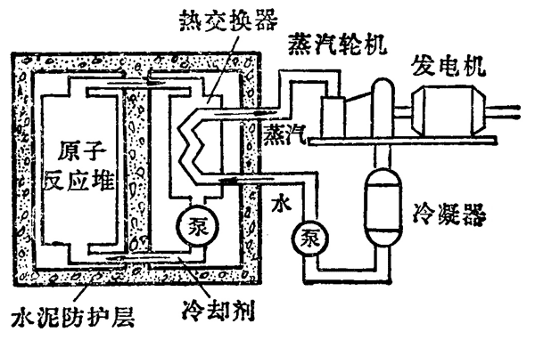反应堆工作时,核燃料裂变释放出的核能转变为热能,使反应堆的温度升高,为了控制反应堆的温度,使它能正常工作,需要用水、液体金属钠或空气等流体作冷却剂,在反应堆内外循环流动,不断地带走热能。这就是反应堆的冷却系统,它同时可以用来输出热能。