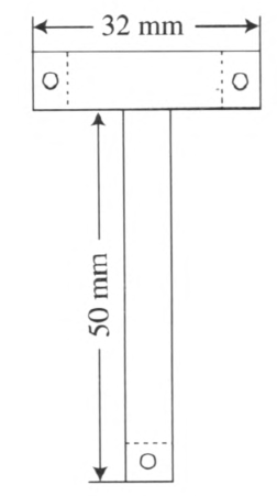 用罐头铁皮剪成如图 1–10 所示的“T”形,将上边的横边卷弯包在圆珠笔的铝筒上,并用螺丝钉或铆钉固定好。铁皮的直边作为支架,固定在卡通车的平板上,如图 1–11 所示。实验时在铝筒内放入几颗火柴头,用小塞子把铝筒口堵上,然后在铝筒封闭端下的铁盒里放一小团浸有酒精的棉花。点燃棉花,对铝筒加热,不一会儿,塞子就从炮口冲出,小车向后倒退。如果在炮口前方加一个收集罩,“炮弹”射出后即入收集罩内,炮车几乎不动。这两种情况都说明系统在水平方向动量守恒。