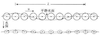 水有深浅之别。对水波来说,深浅是相对于水波波长来说的。水的深度 h 远小于波长 λ 时为浅水。研究指出,浅水面上水波波速 u 和波长无关,只由深度决定,其关系为